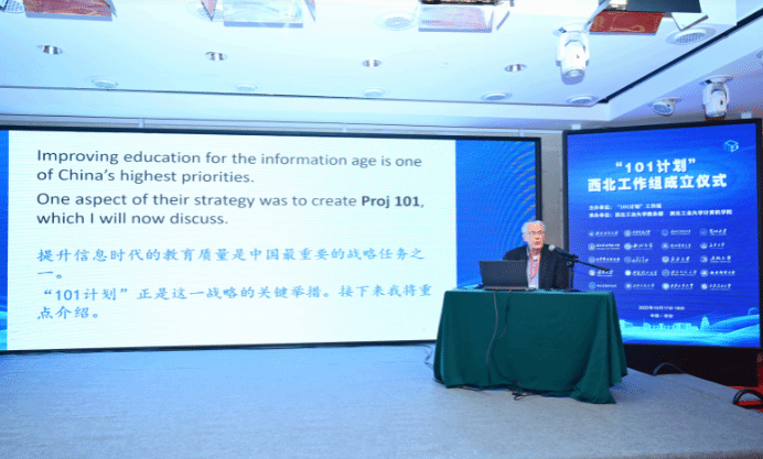 10月17日,2025年计算机“101计划”西北工作组成立仪式在西安顺利召开,会议由计算机“101计划”工作组主办,西北工业大学承办。教育部计算机“101计划”的主要发起人、工作组专家委员会代表John Hopcroft教授莅临会议并做特邀报告,西北工业大学副校长岳晓奎出席会议并致辞,计算机“101计划”工作组高校负责人、核心课程负责人、各省工作组负责人与主要代表80余人参会。会议围绕计算机“101计划”后续工作规划进行了主题报告与研讨,正式成立了计算机“101计划”西北工作组,并组织了“101计划走进高校”系列活动。