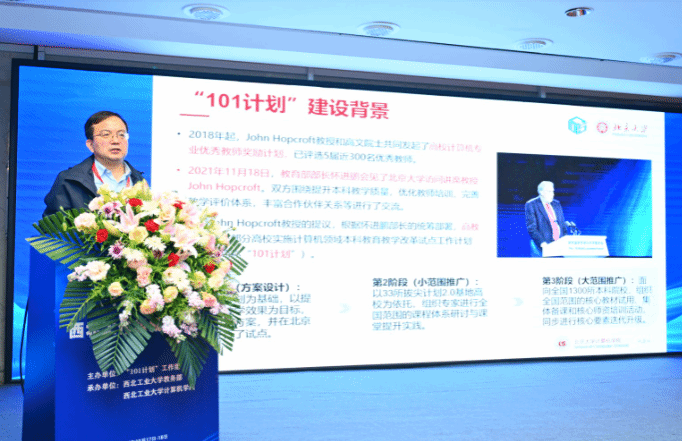 计算机“101计划”工作组秘书长、北京大学计算机学院副院长郭耀教授全面总结了计算机“101计划”前期建设成果,并介绍了当期推广工作进展情况与未来工作计划。