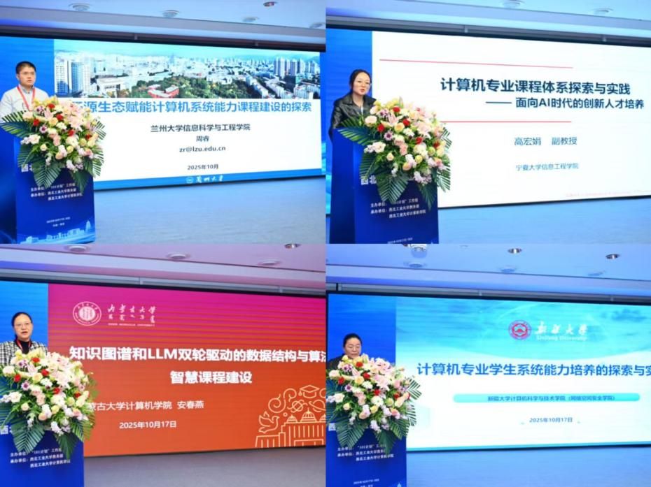 下午的会议由哈尔滨工程大学副校长於志文首先致辞,总体介绍了西北高校计算机专业教育教学的改革举措与思考,并对计算机“101计划”西北工作组的成立表示祝贺与支持。计算机系统虚拟教研室研讨由西北工业大学计算机学院王党辉教授主持。兰州大学周睿、宁夏大学高宏娟、内蒙古大学安春燕、新疆大学盛琪分别分享了所在学校的课程建设和AI实践探索情况。