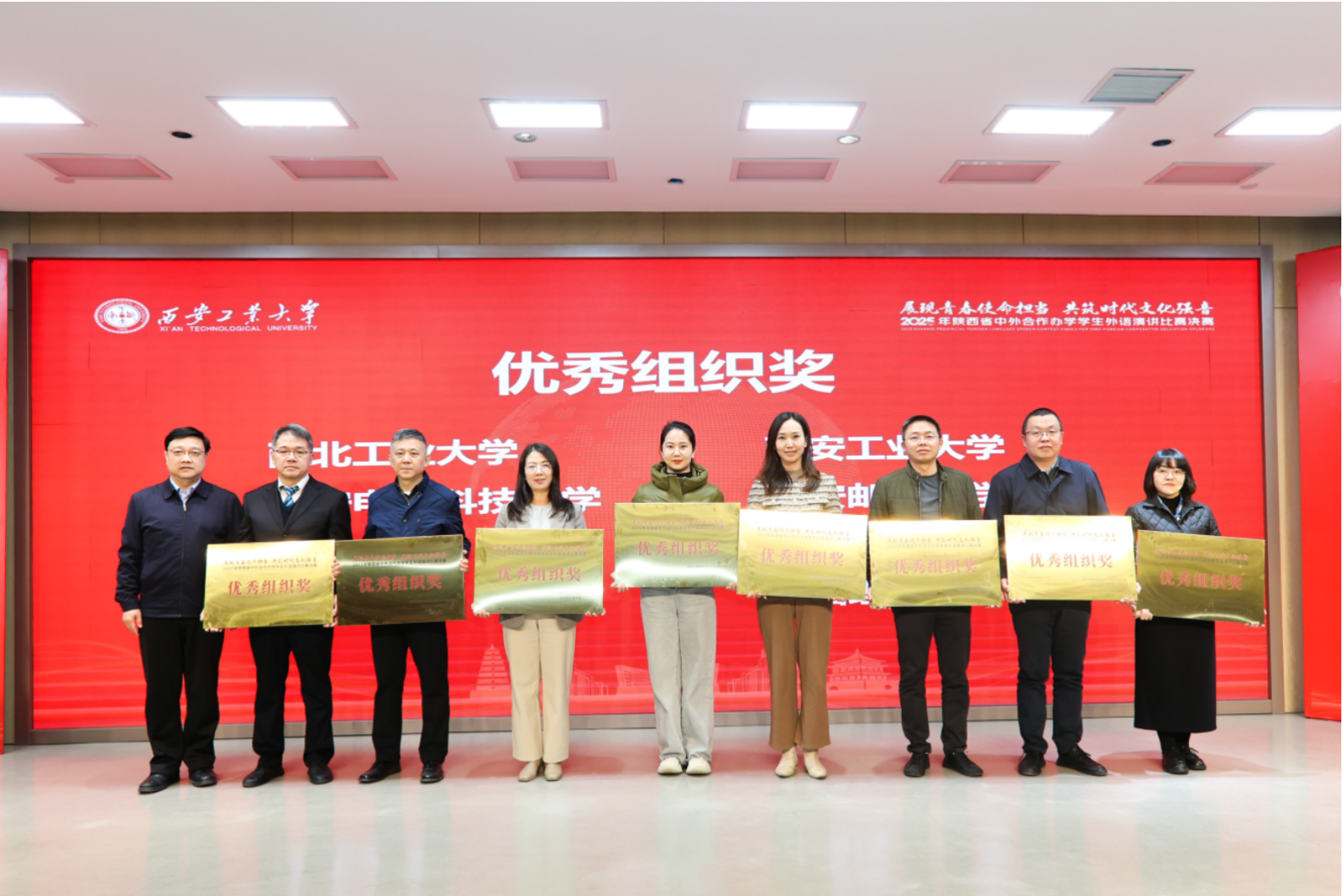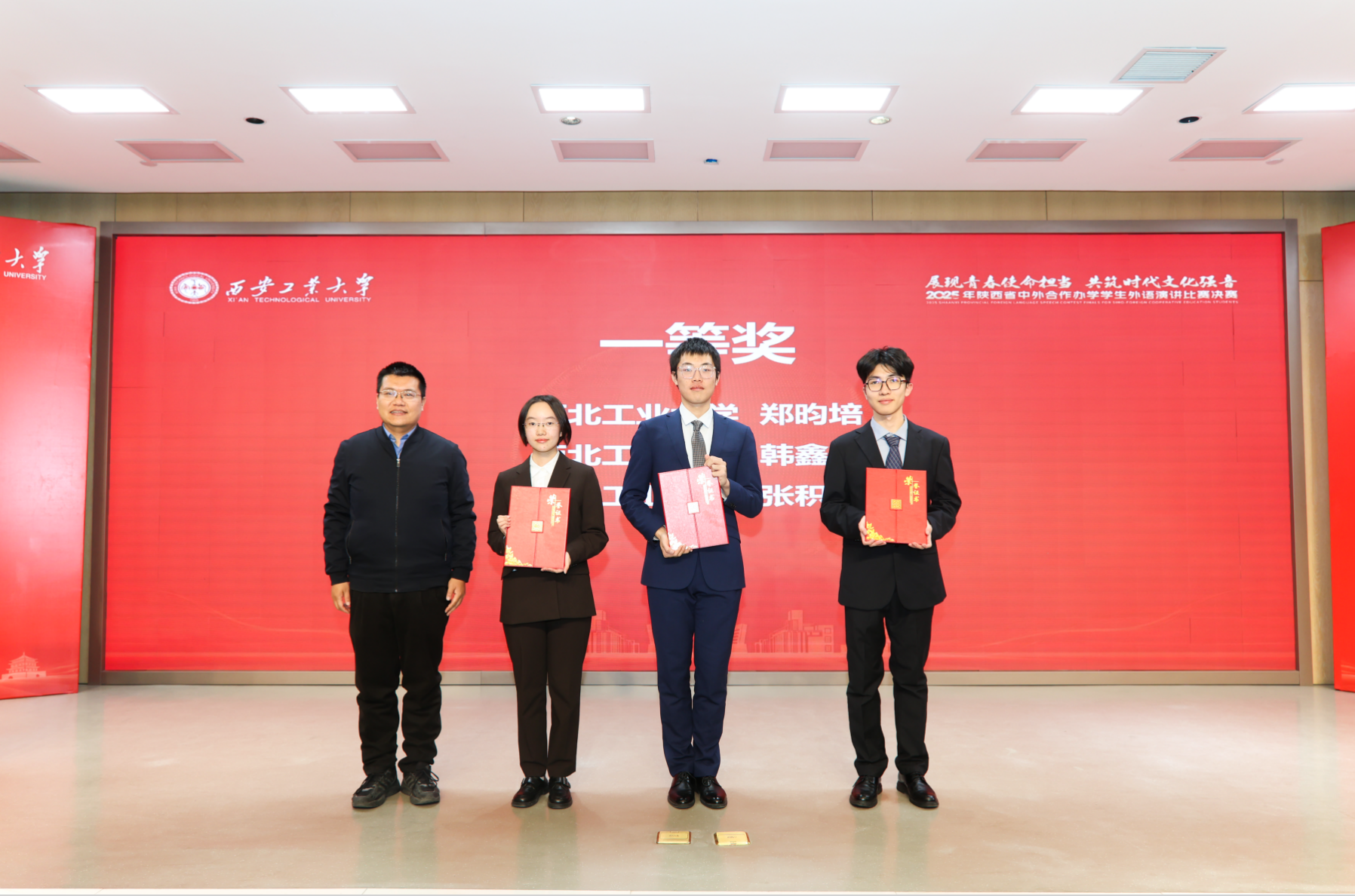 11月25日,由中共陕西省委教育工委、陕西省教育厅主办,陕西省高等教育学会中外合作办学分会与西安工业大学共同承办的2025年陕西省中外合作办学学生外语演讲比赛决赛暨颁奖典礼在西安工业大学(未央校区)隆重举行。本次比赛共吸引来自全省23所院校的63名学生参加初赛,最终24名选手晋级决赛。玛丽女王工程学院2023级本科生张积智、2024级本科生郑昀培、韩鑫厚发挥出色,三人均荣获大赛一等奖;学院同时获评“优秀组织奖”。