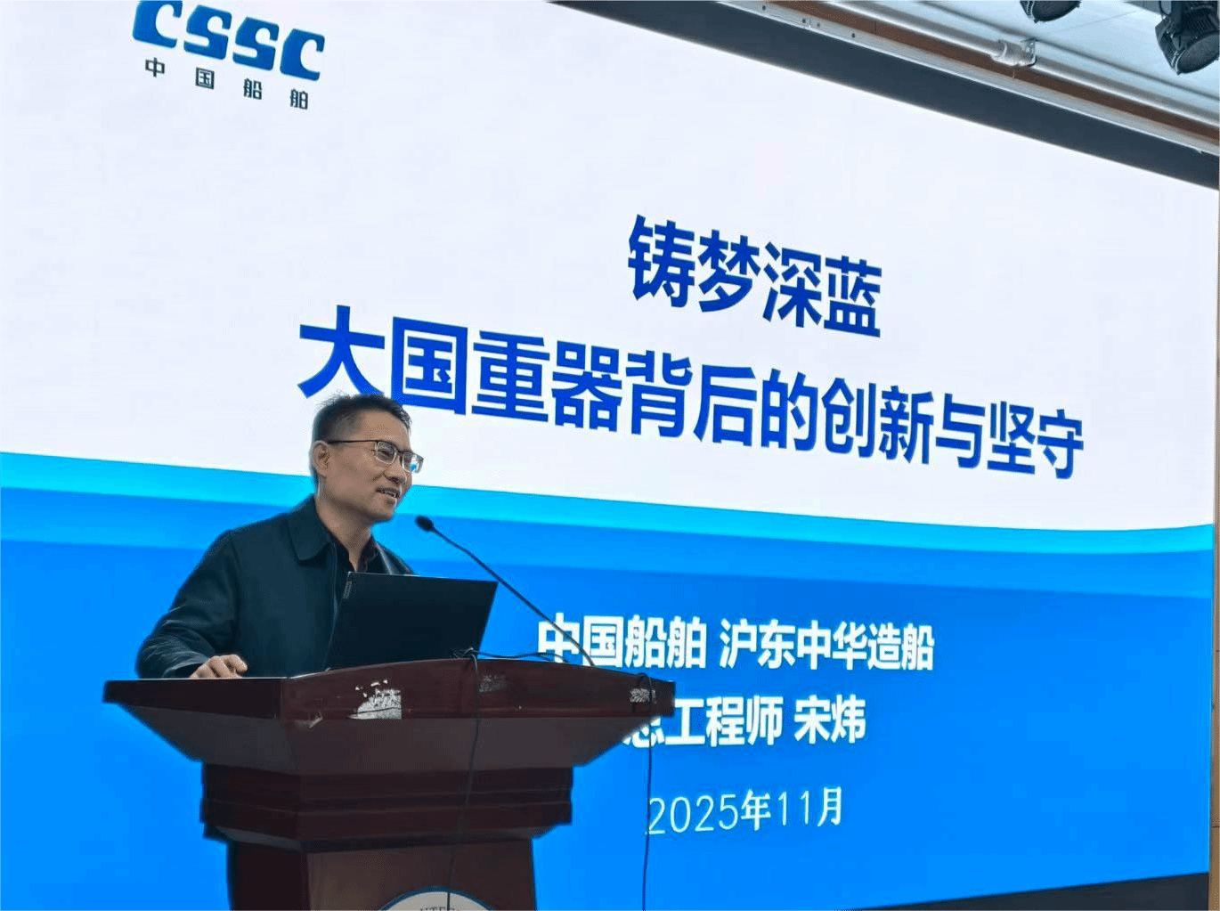 11月29日,中船集团沪东中华造船(集团)有限公司总工程师、LNG船总设计师宋炜应邀做客我校翱翔名家讲堂暨中船集团“总师进校园”活动,在长安校区为同学们作题为《铸梦深蓝——大国重器背后的创新与坚守》的主题报告。党委学生工作部、航海学院、动力与能源学院相关负责同志及近200名学生现场聆听。报告会由党委学生工作部副部长、学生处副处长管峻主持。