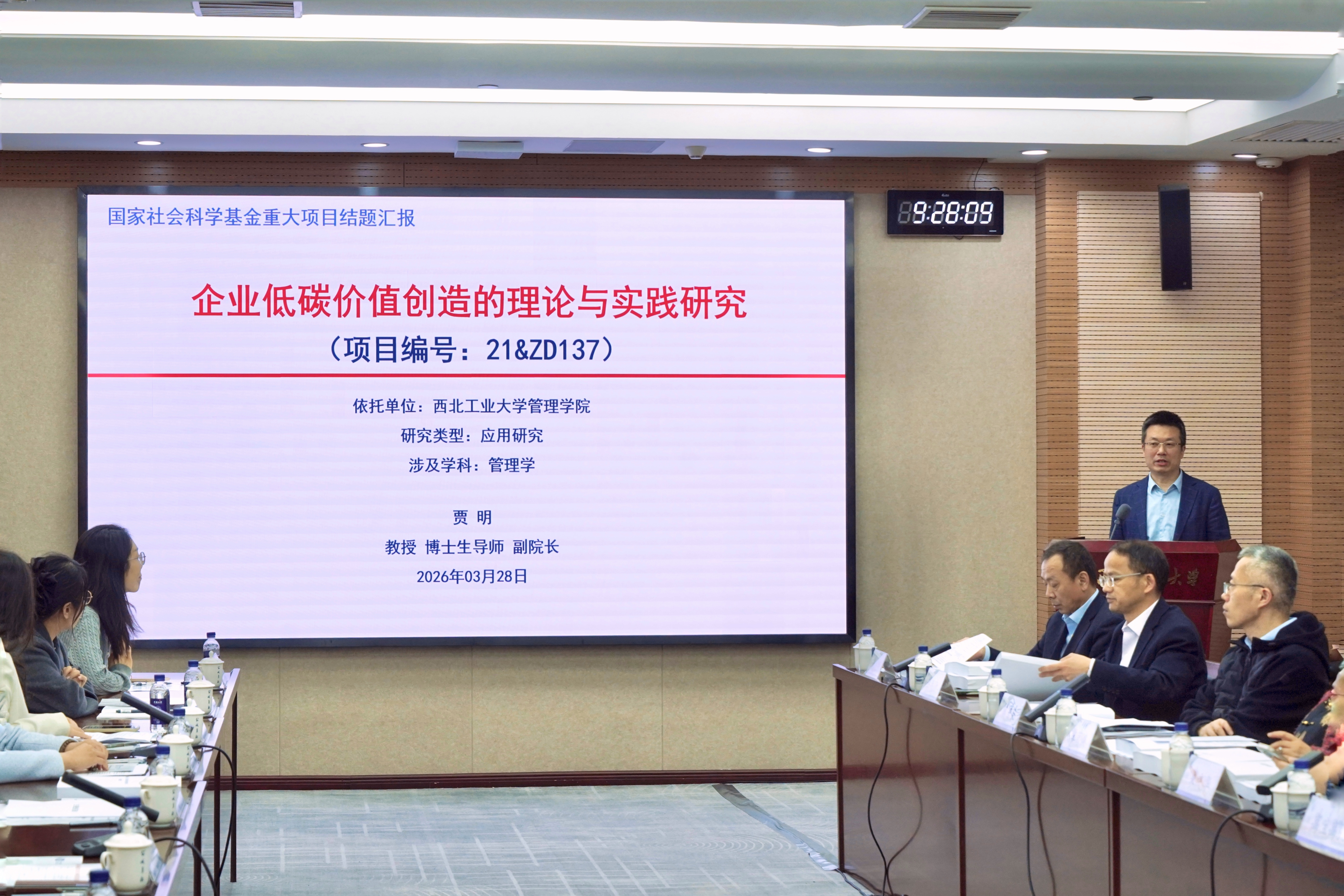 3月28日,由西北工业大学管理学院贾明教授担任首席专家的国家社会科学基金重大项目“企业低碳价值创造的理论与实践研究”(项目批准号:21&ZD137)结项鉴定会在西北工业大学友谊校区国际会议中心第一会议室顺利举行。本次鉴定会由陕西省哲学社会科学工作办公室组织,鉴定专家组由上海交通大学安泰经济与管理学院朱庆华教授担任组长,成员包括西安交通大学管理学院郭菊娥教授、中国人民大学商学院许年行教授、四川大学商学院谢洪明教授、天津大学管理与经济学部解百臣教授。
