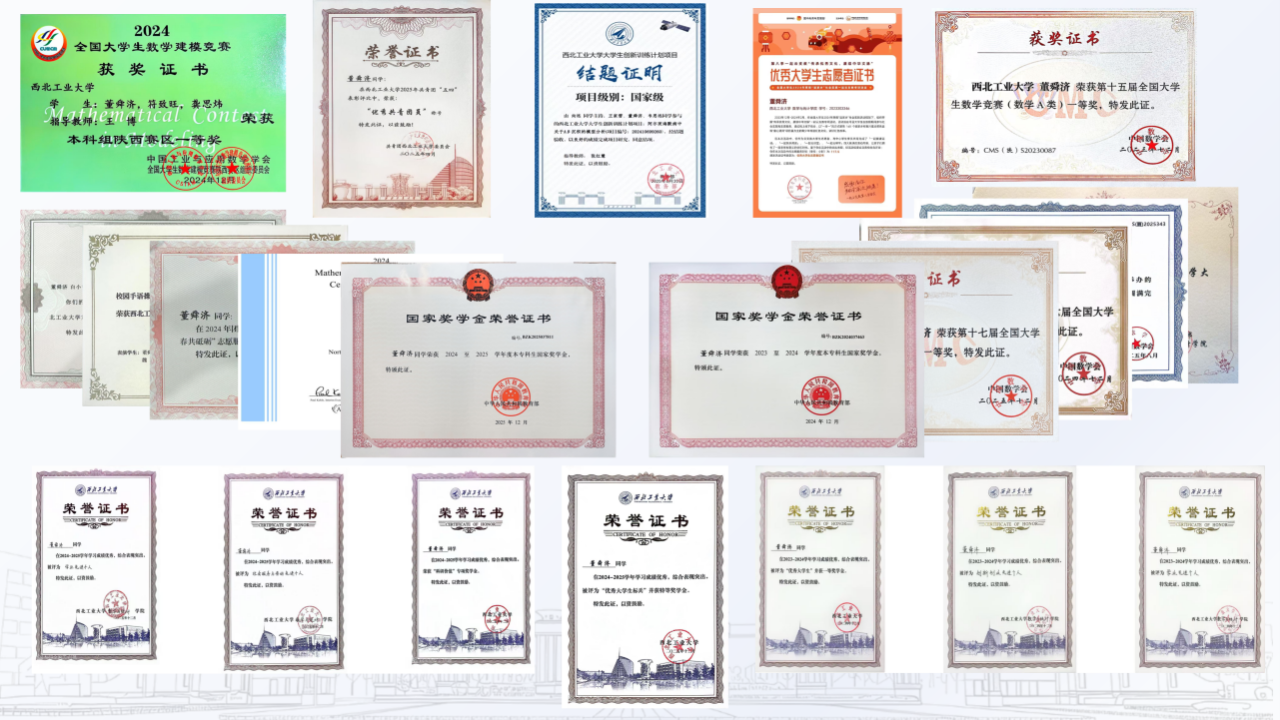 全国大学生数学竞赛(数学A类)一等奖、全国大学生数学建模竞赛赛区一等奖,荣誉背后,是无数个深夜的推演,是面对陌生题目时绝不退缩的较劲,从纸面推演到解决真问题,他愈发感受到:真正的成长,从来不是在舒适区里重复自己。而在一次次挑战中,把“我能行”变成“我做到了”——用数学去回答那些还没有答案的问题。