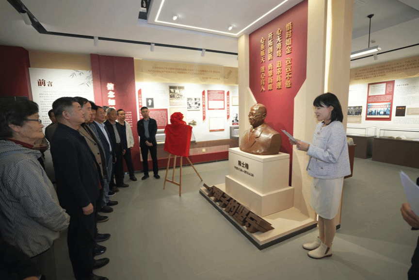 张富利和院士弟子代表、学校原副校长袁建平共同为纪念馆揭牌。学生代表向院士铜像敬献鲜花。