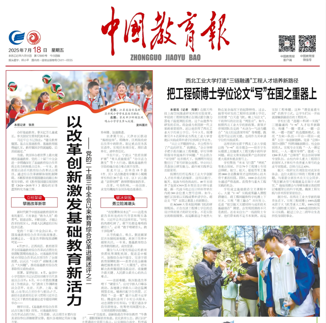 《中国教育报》刊发《把工程硕博士学位论文“写”在国之重器上》,报道我校“三链融通”工程人才培养新路径