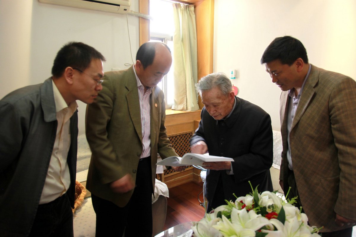 中午时分,在学校机关党委书记朱宏伟的陪同下,工会机关工作人员一行来到94岁高龄的劳动模范胡沛泉教授家中,向胡老敬献了鲜花并送上了慰问金。胡老精神矍铄地向大家介绍了自己60多年来从事教学科研特别是学报工作的感受和体会,老人非常随和健谈,言语中充满了幽默和智慧,还念念不忘关心学校的发展。在愉悦的氛围中大家与胡老合影留念,衷心祝福胡老健康长寿。