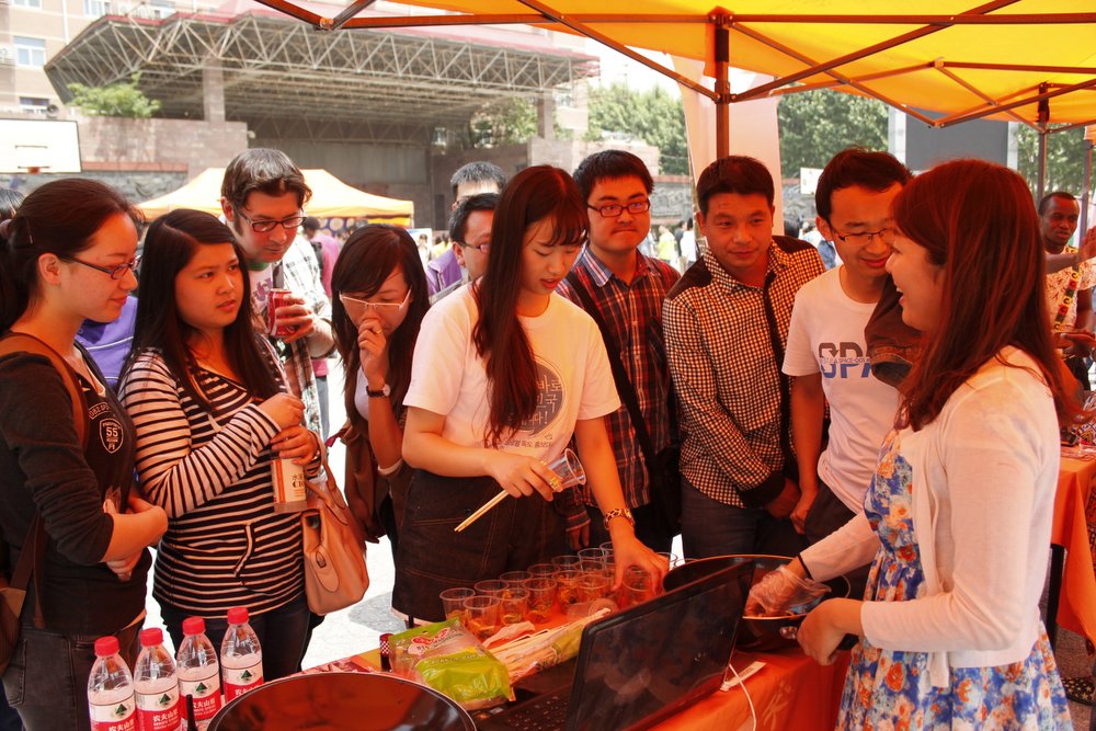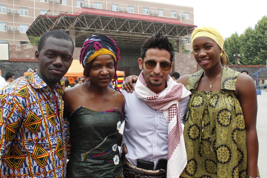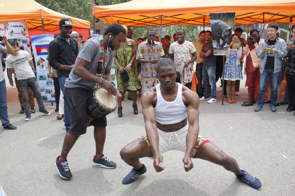 留学生们热情介绍自己国家的历史文化和风景名胜,表演精彩的文艺节目,既有服装走秀,又有歌舞助阵,前来观看表演和品尝美食的中外学生络绎不绝。身着韩服的美女留学生一边介绍韩国美食,一边给爱美的中国女生化起了妆;喀麦隆留学生吹着竹哨、打着皮鼓,充满活力和野性的民族舞蹈吸引了众多师生围观;柬埔寨展台前围满了争相品尝地道美食的中外学生;裹着头巾、身穿民族服装、佩戴腰刀的也门留学生,引以自豪地向大家介绍着本国的历史名胜和传统习俗,兴高采烈地跳起也门舞蹈,引来观众的阵阵掌声;巴基斯坦留学生用彩笔在每位来客手背上精心绘制着自己国家的国旗图案;苏丹留学生忙碌地给大家展示着本国独有的特色木香;乌干达展台布置具有浓郁的民族特色,可口的特色食物供不应求……