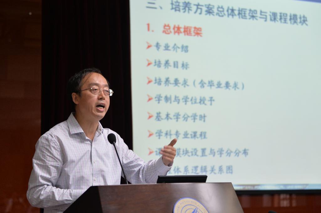 会议由教务处副处长李辉主持。教务处处长孙树栋对本轮本科生培养方案修订工作的迫切性、必要性和重大意义进行了强调说明,对修订工作的前期启动及试点情况做了简要汇报,并全面细致地解读了此次培养方案修订指导意见中的指导思想、修订原则、培养方案总体框架与课程模块、课程教学与综合实践模块设置、指导性教学计划编制要求、学分计算办法和其他相关事项等七个方面的内容。航海学院副院长王惠刚、材料学院副院长李文亚、机电学院副院长马炳和、电子信息学院副院长万国宾、自动化学院院长潘泉、计算机学院副院长杜承烈分别就本单位在培养方案修订前期试点过程中所形成的工作经验、要点以及合理化建议等与参会者进行了汇报交流。