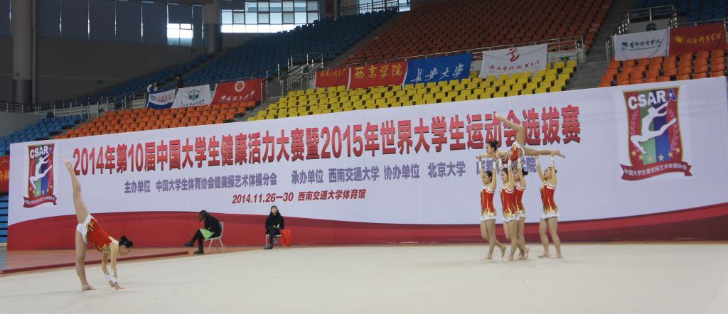 西工大新闻网12月3日电(彭琼 王轲)第10届中国大学生健康活力大赛暨世界大学生运动会选拔赛于11月27日至30日在西南交通大学犀浦校区体育馆举行。本次比赛项目由健美操、艺术体操、啦啦操、健身健美、校园健身舞等5大项组成。共有来自北京大学、清华大学和同济大学等全国115所高校的2000余名运动员参加了本次比赛。