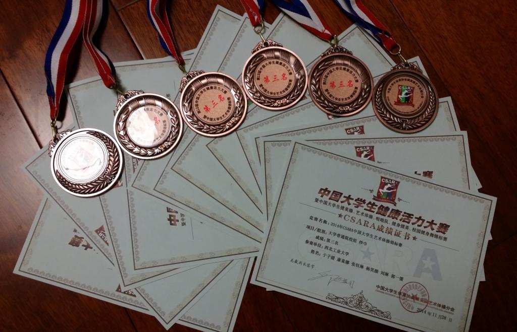 西工大代表队也是十余年来首次参加该项体育赛事,所有学生全部为在校普通大学生。在艺术教育中心及相关部门支持下,教练员克服各种困难,历经一个多月的紧张训练,报名参加了艺术体操类比赛。经过全体教练员和运动员的一致努力,最终西工大获得艺术体操大学普通院校组纱巾操季军,集体全能第五名成绩。