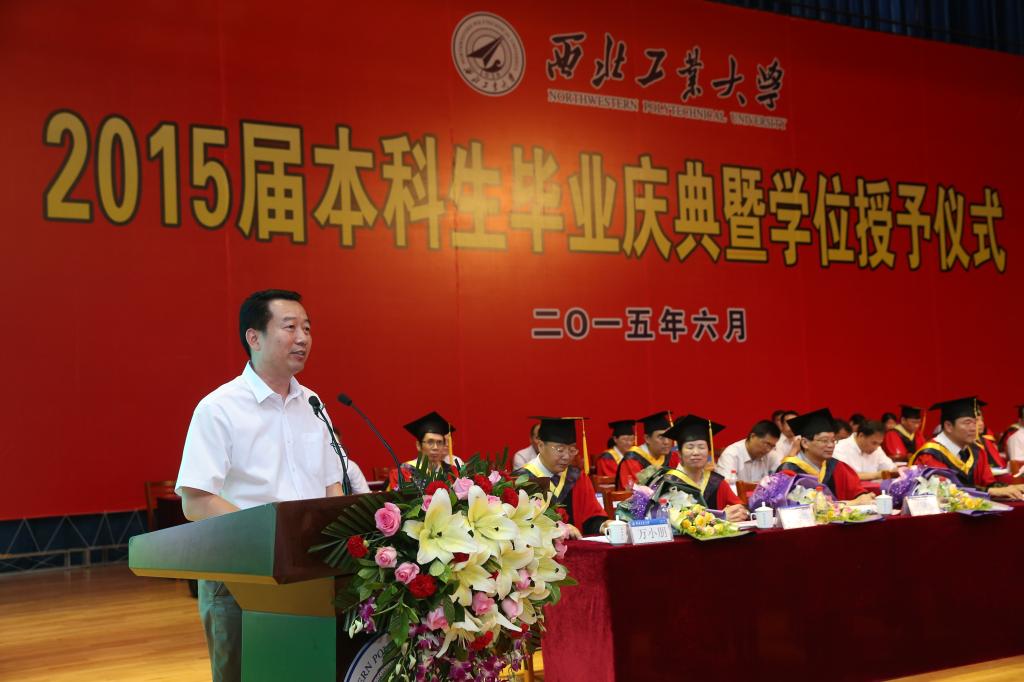 校党委书记陈小筑宣读《西北工业大学关于表彰2015届优秀本科毕业生的决定》,希望被表彰的225名优秀本科毕业生戒骄戒躁、再接再厉,在新的学习和工作岗位上继续发扬母校的优良传统,拚搏进取、开拓创新,取得更大的成绩。同时,希望全体在校生以优秀毕业生为榜样,积极进取、奋发成才,勇于追梦、勤于圆梦,为实现个人的成才梦、报国梦和伟大的中国梦而不懈奋斗。