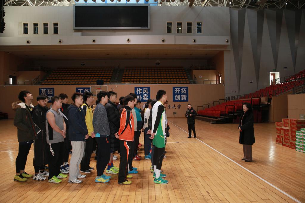 体育馆内,参加集训的师生整齐列队,热烈欢迎陈小筑书记。陈书记首先关切地问到,你们集训要到哪天?想家吗?学生们与陈小筑书记亲切地交谈,陈书记说到,校工会代表全校教职工给大家带来了火腿、牛奶、饮料、饼干、方便面,如果不够,我们再给大家送,坚决做好你们的保障工作,师生们纷纷对陈书记表示感谢,最后,陈小筑书记与万小朋副校长、陈建有副书记一同给同学们拜了早年,祝福同学们学业有成、阖家幸福!