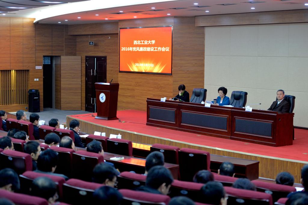 西工大新闻网3月25日电(张永鑫 摄影记者 郭友军)3月25日,学校召开2016年党风廉政建设工作会议,校党委委员、纪委委员、基层党委纪检委员、全校处级干部及机关科级干部参加了会议。会议由校长汪劲松主持。