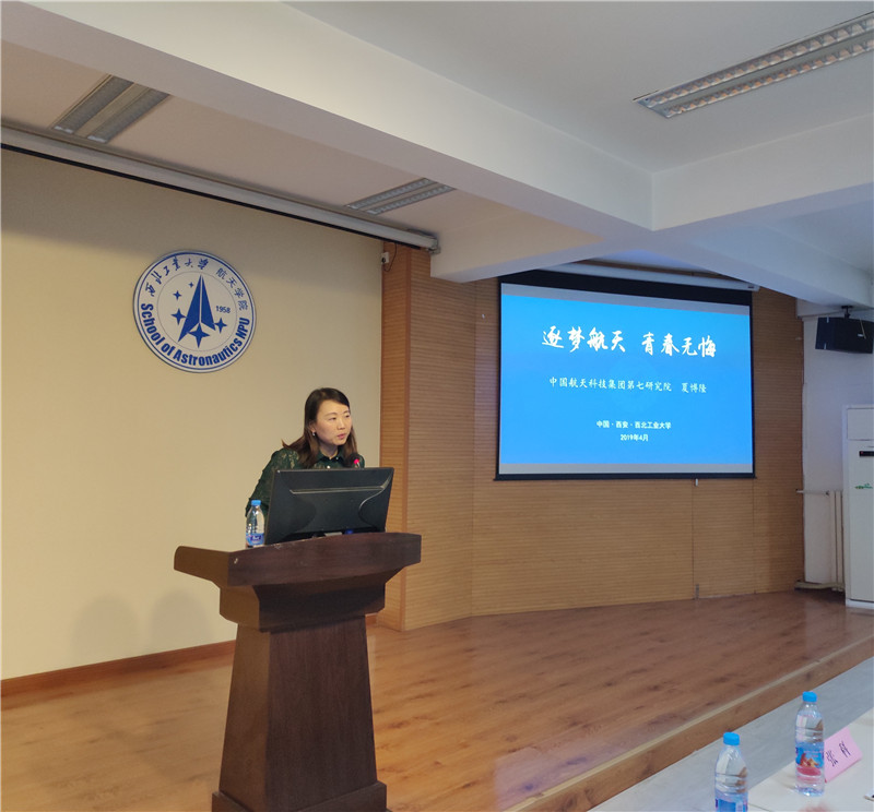 会议伊始,王莉介绍了分享会主讲人夏博隆老师以及航天七院的各位领导嘉宾。在同学们热烈的掌声中,夏博隆以“逐梦航天,青春无悔”为主题为同学们作报告。他介绍了航天七院(四川航天技术研究院)对中国航天事业和航天人才培养的卓越贡献,随后从三线建设、优秀航天人的故事、我国航天工业的发展历程等方面向同学们展示了航天七院的发展历史,并向有意投身航天事业的学生们介绍了七院下属各研究所的主要项目、产品、人才发展情况和工作环境等。