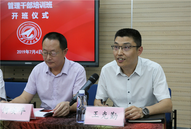 西工大新闻网7月7日电(罗淑娟 摄影记者 周军平)7月4日下午,工信部定点扶贫县(区)学校管理干部培训班在附属小学开班。来自河南汝阳、洛宁及四川南充、南部的40位中小学校长、副校长、主任等管理干部参加本期培训。西北工业大学校长助理杨益新,扶贫办公室主任杨永祥,附属小学副校长、基础教育中心党办副主任王志斌,附属小学教导处主任范晓兰等参加开班仪式。开班仪式由党校副校长兼党委组织部副部长王克勤主持。