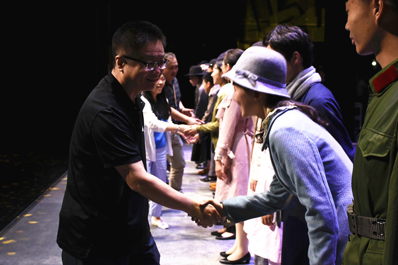 演出结束时,全场掌声不断,衷心向学生演员们表示诚挚谢意。随后,领导们纷纷上台与演员们合影留念。陈建有书记在与学生们近距离交流时说,虽然这是第三次观看本剧,但看完依旧很感动,同学们一次次地排练,是一种追求卓越,更是一种自我超越,希望大家把这种好的精神状态保持下去。这给予同学们极大鼓舞,同时也表明老一辈科学家们舍小家为大家、不求名利只为科学献身的伟大品格一直是时代所需要的。太仓市招商局陈春龙在观看话剧后表示,“作为土生土长的太仓人,很感谢西工大提供这样的机会,在家门口就能看到如此高规格的话剧表演。中国的发展日新月异,始终有那么一批不忘初心,甘于奉献的人物不断涌现,这是中国百年来发生如此天翻地覆变化的重要原因。我们歌颂缅怀师昌绪这样的科学大师,也在心底敬仰着无数个在背后默默奉献的楷模。”
