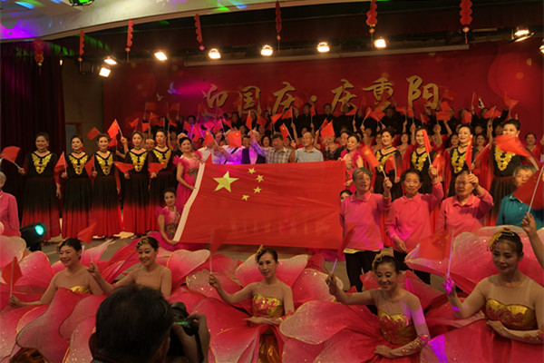 最后,活动现场的300余人有节奏地挥动着国旗,共同唱响《我和我的祖国》,共祝伟大祖国繁荣昌盛;共祝所有老人福寿安康!充分展现了大家的爱国、爱校之情,久久不愿离去,反复唱着《我和我的祖国》,将联欢会推向了高潮。
