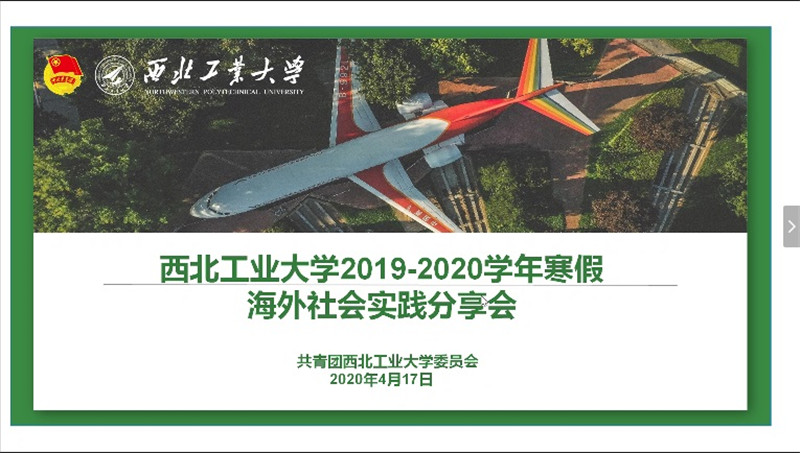 西工大新闻网4月19日电(冯婷婷 许世聪 王宇龙)4月17日晚,校团委举办2019-2020学年寒假海外社会实践分享会。