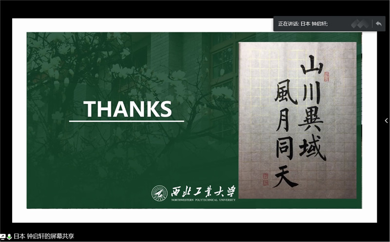 来自航空航天大类的刘盛昌同学及材料与化工大类的钟启轩同学从教育、科技、文化三方面对日本早稻田大学项目进行介绍,通过“学生本位制”等不同问题,让他切实体会到中日两国之间存在的文化差异,并在最后赋诗作念,倡议我们青年一代应立足当下,展望未来。