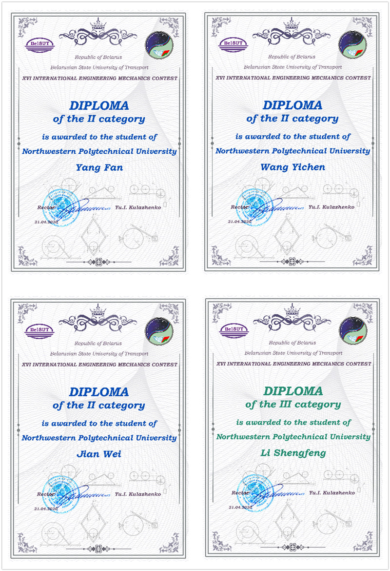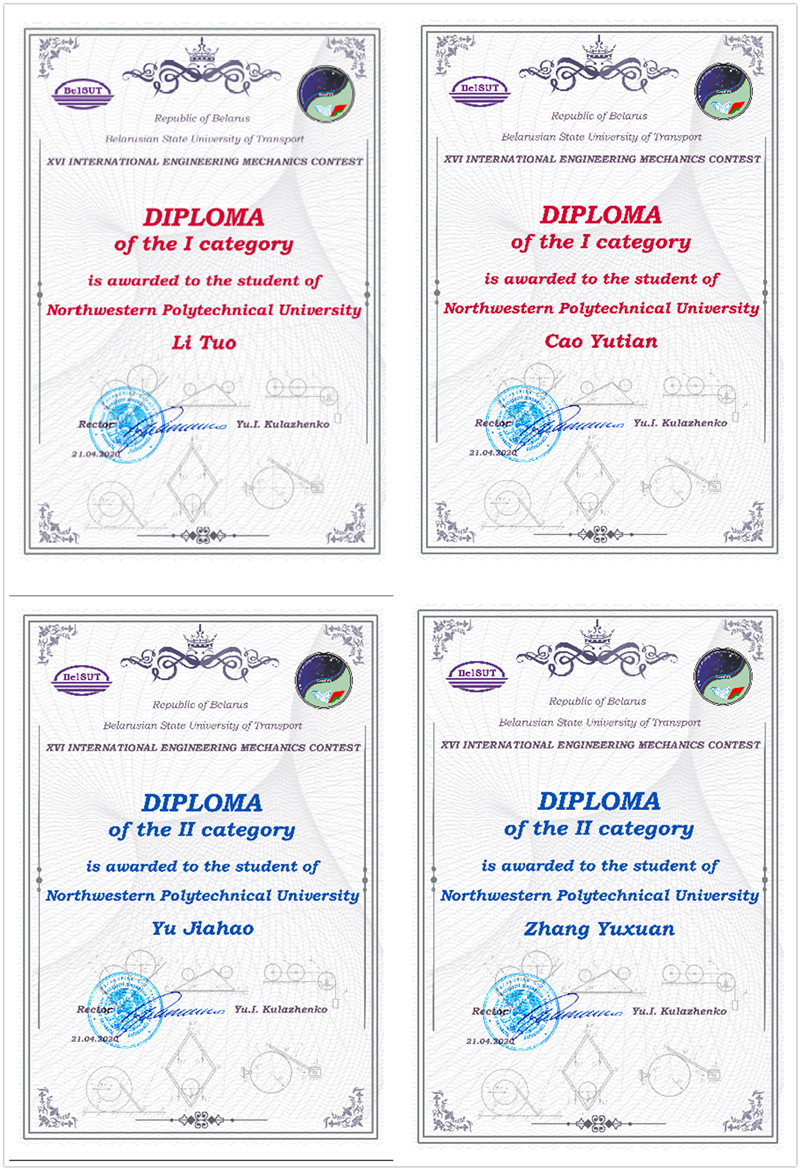 接到参赛通知后,经过校内层层选拔,我校选派了8名同学参加竞赛。最终在294名参赛选手中,航空学院李拓、力学与土木建筑学院曹宇田同学获得一等奖;航空学院王浥尘、杨帆同学,教育实验学院于家豪、张宇轩同学,力学与土木建筑学院简巍同学获得二等奖;力学与土木建筑学院李胜锋同学获得三等奖。