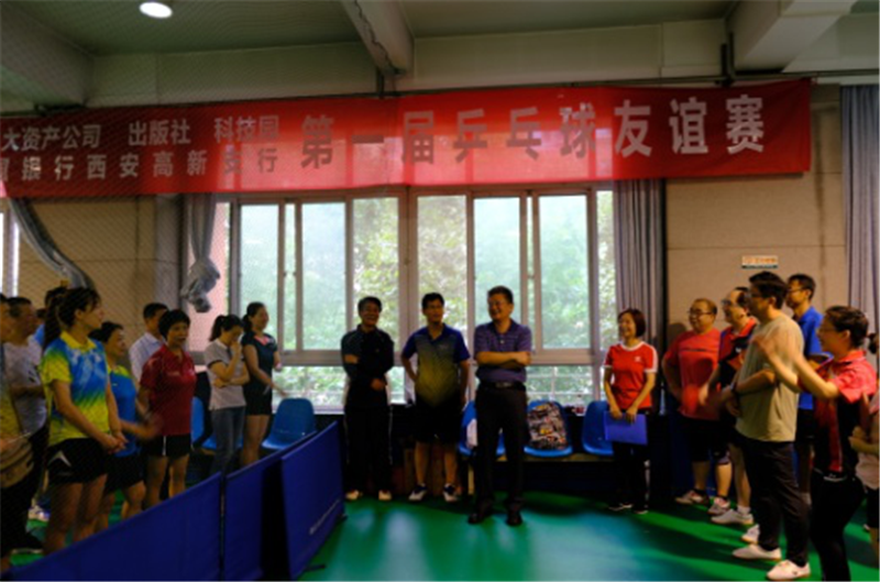 西工大新闻网8月18日电(李杰)为了更好地推进西工大资产公司党委与中国银行高新支行党总支的党建共建交流,加强校企合作,进一步促进双方的合作与进步,7月25日,由西北工业大学资产公司党委、工会和中国银行高新支行党总支共同策划的“资产公司、出版社、科技园与中国银行高新支行第一届乒乓球友谊赛”成功举办。资产公司总经理兼国家大学科技园主任符新伟、资产公司党委副书记兼工会主席杨志坚、资产公司副总经理杨安庆、出版社副社长唐小林及中国银行陕西省分行人力资源部总监苏芳、中国银行高新支行两位副行长等领导出席,活动由中行高新支行吴国艳副行长主持。
