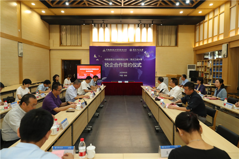在全体参会人员的共同见证下,中航技进出口有限责任公司党委副书记唐建明与西北工业大学校党委副书记万小朋代表双方签署了校企合作框架协议。