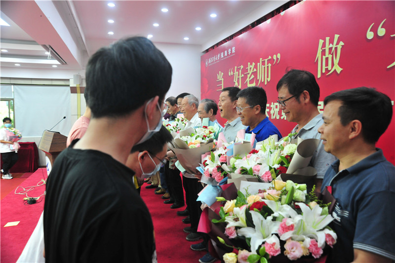 航海学院走过65年春秋,一代又一代的海院师生奋力拼搏,前赴后继,弦歌不绝,为学院的建设和发展献出自己的力量。有的老师从教近40年,他们见证了学院的历史,为了表达对老师们的敬意与节日的祝福,学生们向从教35周年以上教师献花,学院领导向老师们赠送纪念品,衷心祝老师们节日快乐。