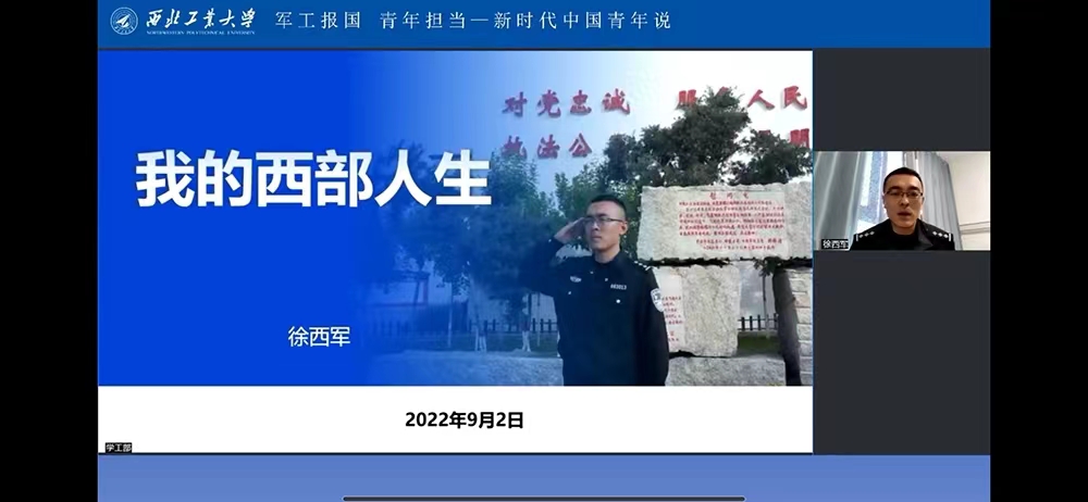 在“军工报国 青年担当——新时代中国青年说”主题宣讲上,“金色哈达扶贫扶智”的全国“向上向善”好青年、第十三届全国人大代表古清月,“矢志军工铸国之利器”的某机载巡飞弹副总设计师王刚,长期戍边红其拉甫边防线的“热血男儿”徐西军三位校友分别以《创新笃行,用实干丈量生命价值》《以青春负使命,尽责任勇担当》《我的西部人生》为题作分享,讲述了军工报国、青春奋斗的动人故事,并结合实际工作给学弟学妹们提供了成长成才导引。