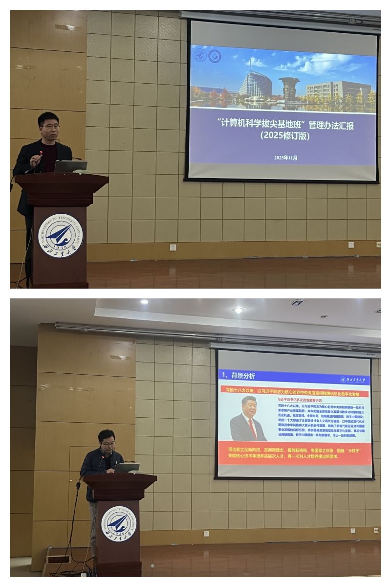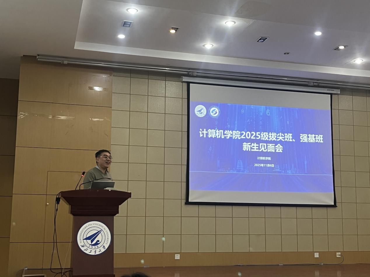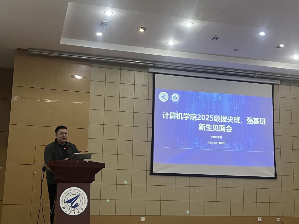 2025年11月6日下午,计算机学院2025级康继昌计算机科学拔尖班、信息与计算科学(智能科学与技术)强基班新生见面会在长安校区计算机学院二楼报告厅顺利举行。学院领导、班主任、优秀学生代表及全体拔尖班、强基班新生齐聚一堂,围绕拔尖创新人才培养、班级建设与发展规划展开深入交流。院长尚学群、党委副书记赵媛媛参会并讲话,会议由副院长郭斌主持。