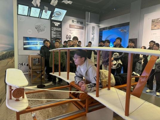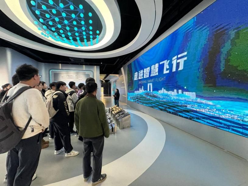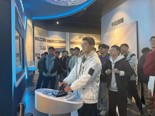 在智慧飞行馆,同学们沉浸式体验了飞行控制技术和航空科技的前沿成果。馆内通过互动体验、模拟飞行、自动驾驶仪原理演示等现代化手段普及航空科技知识,生动展现了我国航空工业从“想飞会飞”到“享飞慧飞”的发展历程。面对一架架承载我国航空工业实力的机型模型,大家驻足凝视、认真记录,在近距离感受航空科技魅力的同时,由衷表达对航空科技工作者的崇高敬意。