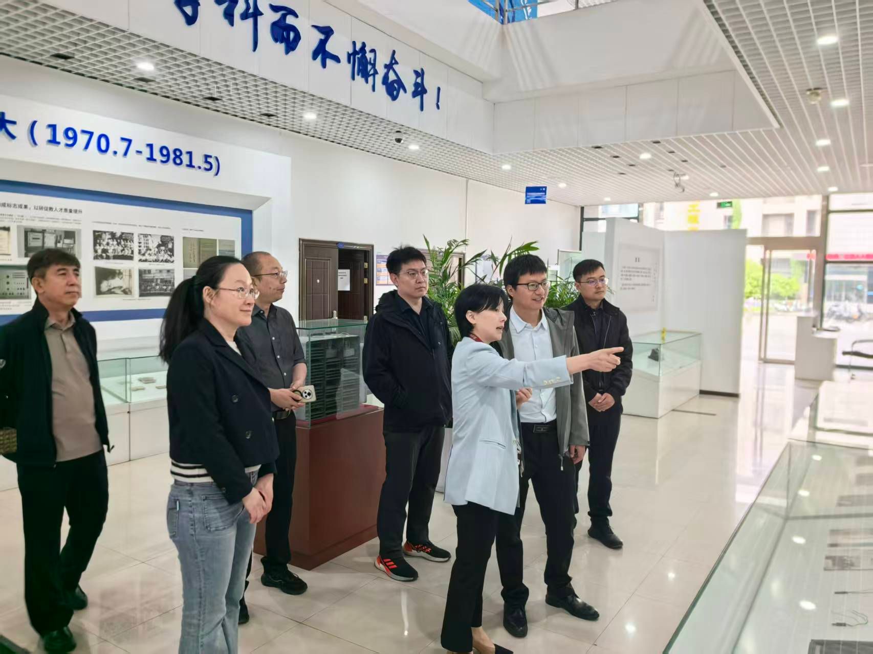 会前,尚学群陪同北邮一行参观学院院史馆,介绍学院发展历程与学科特色。