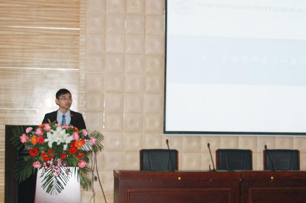 随后,我校管理学院、自动化学院、计算机学院代表以及西安交通大学、西安电子科技大学、西北大学、西安理工大学的代表依次介绍了各自学校和学院的概况、学科特色和主要科研成果,并围绕“前沿问题研究、学术经验交流以及研究生会工作开展”等三个讨论主题进行了充分自由的交流。各位代表们分别从学术科研方法、营造学术氛围、开展学生工作等方面做了详细深入的讲解。管理学院代表介任龙对管理科学与工程领域的前沿问题以及该专业的研究方法等进行了讨论,并介绍了学院该专业的发展情况;自动化学院研会主席王君相通过对“DoDAF体系结构设计及在战略预警仿真系统的应用”的分析,让在座同学了解了管理理论在相关交叉学科的应用情况;西安交通大学代表崔天恒从自身的经历和感受出发,提出了“四库师门管理法”的硬盘式管理和“Seminar协会”的CPU式管理,希望将学术活动和学生工作对接起来。整个交流环节和谐活泼,贴近研究生学习实际,深深吸引了在座的与会代表。