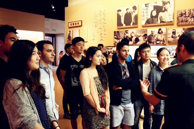 29日中午,雨水冲洗过的枣园静谧而庄重,刚刚抵达延安的留学生们,兴奋地从这里开始了参观。大家顺着台阶拾级而上,一间间地走进了毛泽东、周恩来、刘少奇和邓小平等新中国领导人曾经工作过和生活过的窑洞。望着窑洞内简单的陈设、泛黄的照片,留学生们无不感叹伟人在如此艰苦的条件下带领中国人民取得了令全世界瞩目的胜利。延安革命纪念馆是一座陈列展出革命文物,反映在中国共产党领导下延安地区革命斗争史的纪念馆,主要宣传1935年10月至1948年3月近13年间,党中央在延安和陕甘宁边区领导中国革命的光辉历史。对留学生来说,这里成为他们了解这段历史的一部最为生动的教材。针对留学生的特点,纪念馆的讲解员放慢语速,用边说边唱的方式把这一段革命历史娓娓道来。 “自力更生,艰苦奋斗”、“自己动手,丰衣足食”、“实事求是”、“全心全意为人民服务”等延安精神对留学生不再是抽象的词汇,而化作一个个血肉丰满的光辉形象,一段段真实感人的革命伟业。从革命纪念馆一路走来,留学生们第一次如此贴近那段艰苦的岁月,也再一次被战胜苦难后大步前进的当代中国牢牢吸引。