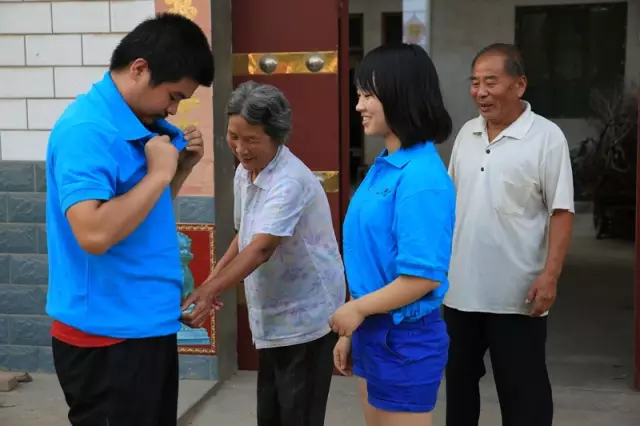 2013年爱心直通车上的川妹子王琦成为2014年志愿者,她把志愿者的衣服赠送给新生王昭阳,希望明年他可以一起加入爱心直通车的志愿者行列