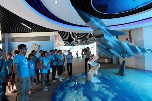 2013年“爱心直通车”活动石家庄首航,老校友带新学生参观中航工业石飞