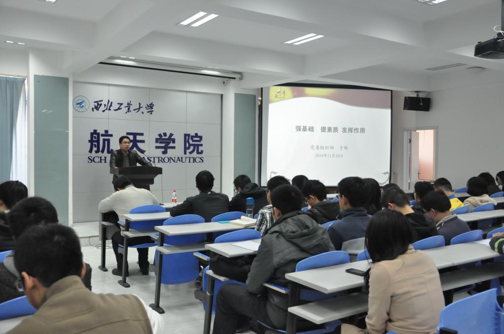西工大新闻网11月24日电(通讯员 佘磊磊) 为了进一步增强学生党支部骨干的理论基础,提高学生党支部书记的业务素质,从而更好的发挥学生党支部在基层学生工作中的战斗堡垒作用。11月20日下午4点,航天学院学生党支部书记培训班第三讲在航天学院六楼会议室举行。党委组织部于辉,院学生党支部书记培训班负责人佘磊磊,研究生兼职教导员罗淑娟、本科生兼职辅导员王琼,以及学院全体学生党支部书记和支部委员参加了本次交流会。交流会由佘磊磊主持。