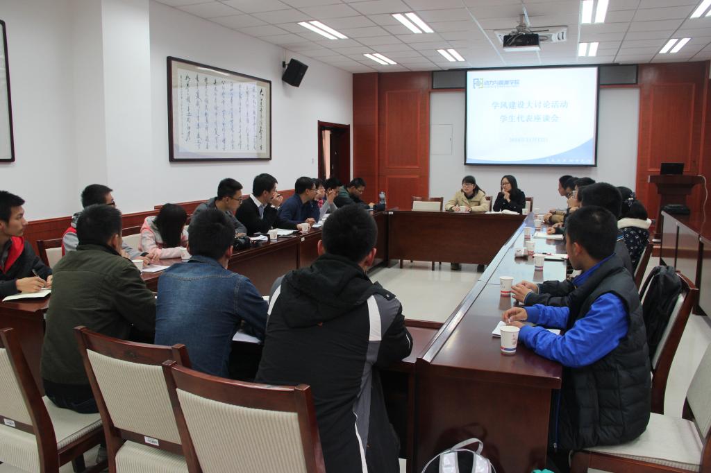 11月13日、17日、18日,学院按照年级先后在学院楼225会议室召开本科生和研究生学风建设代表座谈会,副院长王占学、院党委副书记沙治邦和各年级辅导员全程参加本科生代表座谈会,院党委副书记沙治邦和教导员参加了研究生代表座谈会。