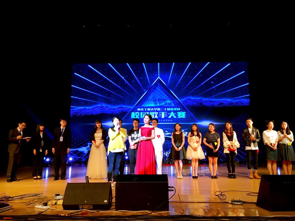 荧光棒的闪耀,掌声、欢呼声、加油声此起彼伏,热烈的气氛笼罩着决赛现场。学生发自内心的呐喊和源于灵魂的歌声成为现场的主旋律——激昂向上。参赛选手的演唱风格或热情奔放,或深情含蓄,音乐时而轻快活泼,时而激情澎湃,整场比赛高潮迭起,精彩非凡。应同学们的热烈邀请,杜鹃汀评委倾情演唱了一首《漂洋过海来看你》赢得到场观众的阵阵欢呼,李强评委的一首《敢问路在何方》再次助燃翱翔。参赛选手的实力比拼同时的互相谦让、合作,感动的流泪,激动的哭泣,深深打动着现场师生。