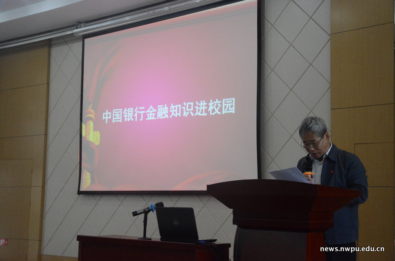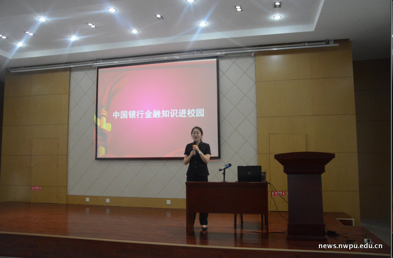 西工大新闻网5月11日电(冯皎皎 温姜勇)5月10日,由我校与中国银行陕西省分行共同举办的“送金融知识进校园”西北工业大学站的活动在人文与经法学院报告厅举办。参加此次活动的领导和嘉宾有西北工业大学人文与经法学院党委书记鲁卫平、人民银行陕西省分行征信处处长邱念坤、中国银行个贷部副经理操迪、中行高新支行副行长郭缙、中国银行西工大支行行长李曼、西北工业大学研工部李霞老师以及来自各个学院的老师和同学们。