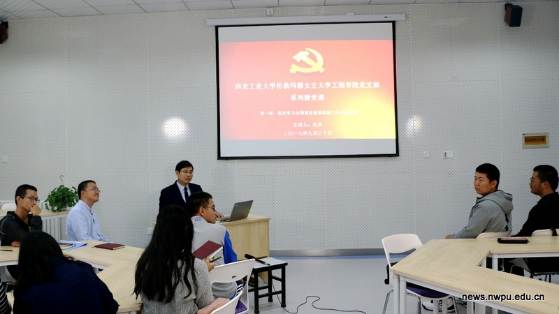 西工大新闻网10月10日电(姬潇潇 杜剑楠 李博轩)在材料学院党委的统一安排和部署下,9月30日上午,玛丽女王工程学院党支部书记、院长孔杰同志以深入贯彻落实全国高校思想政治工作会议精神为主题,以“四个正确认识”为切入点,为学院全体教工党员和部分学生骨干讲授了一堂生动而精彩的思政课,开启了学院党支部微党课系列讲座。