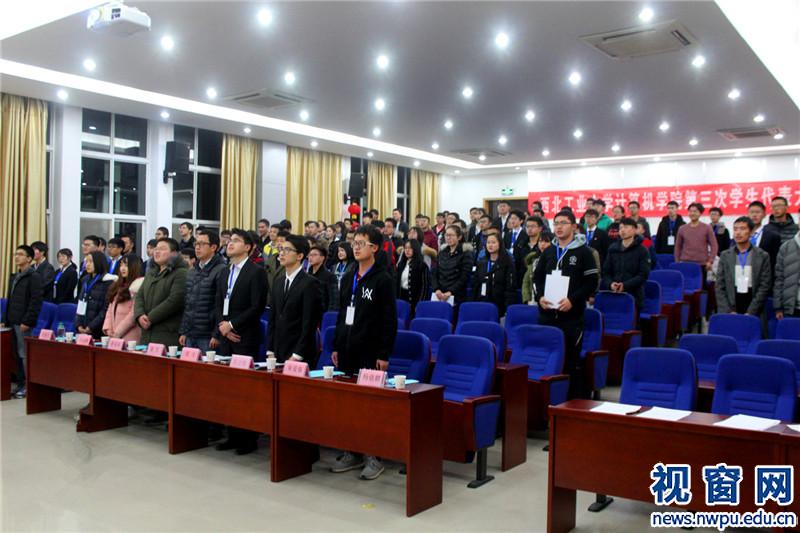 西工大新闻网12月19日电(张生 王亦凡 卢宏超)12月17日晚,西北工业大学计算机学院第三次学生代表大会在计算机学院新报告厅召开。计算机学院党委副书记董昊、院团委书记张生、计算机学院2016-2017学年学生会主席苗言铭、各学院学生会主席、副主席,以及来自全院各基层学生组织的103名代表参加了此次会议。大会由计算机学院学生会组织部部长邵慈主持。