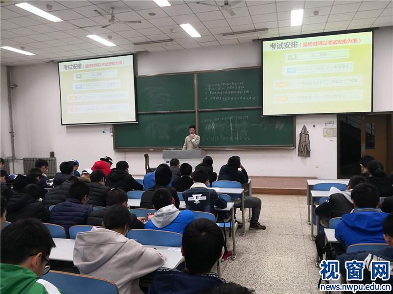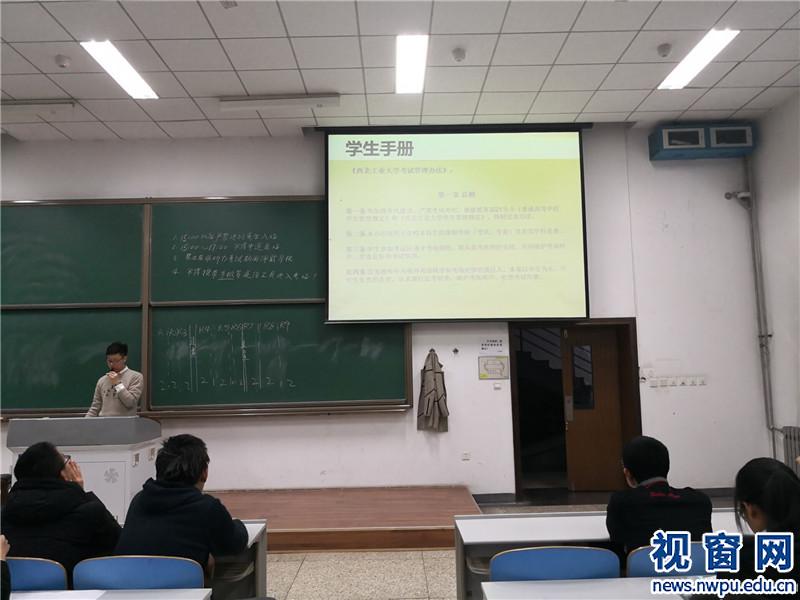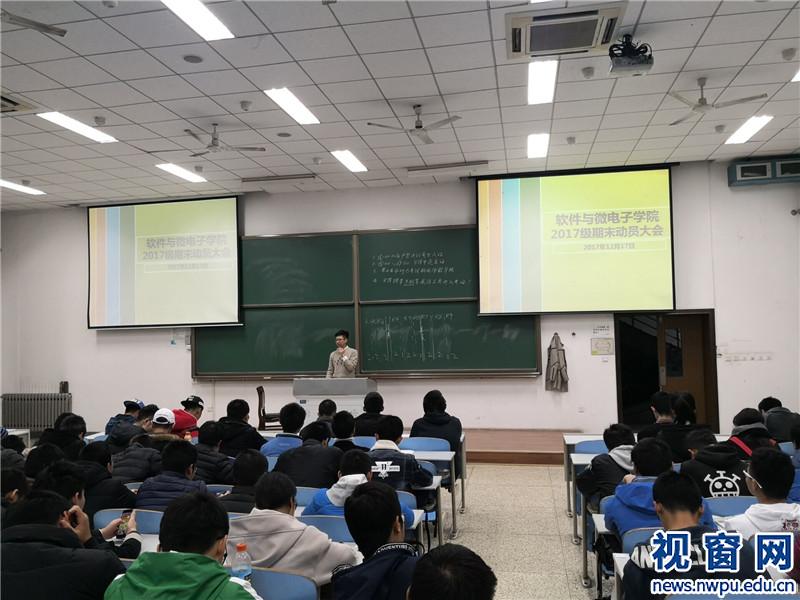 西工大新闻网12月19日电(冯聪 王怡宁)2017年12月17日,软件与微电子学院于教学西楼D105教室召开了期末考试动员暨考风考纪教育大会,主持本次班会的是2017级本科生辅导员陈智通,全体2017级新生共同参加。临近期末,陈智通围绕着期末安排、期末复习、考风考纪开展了期末动员大会。