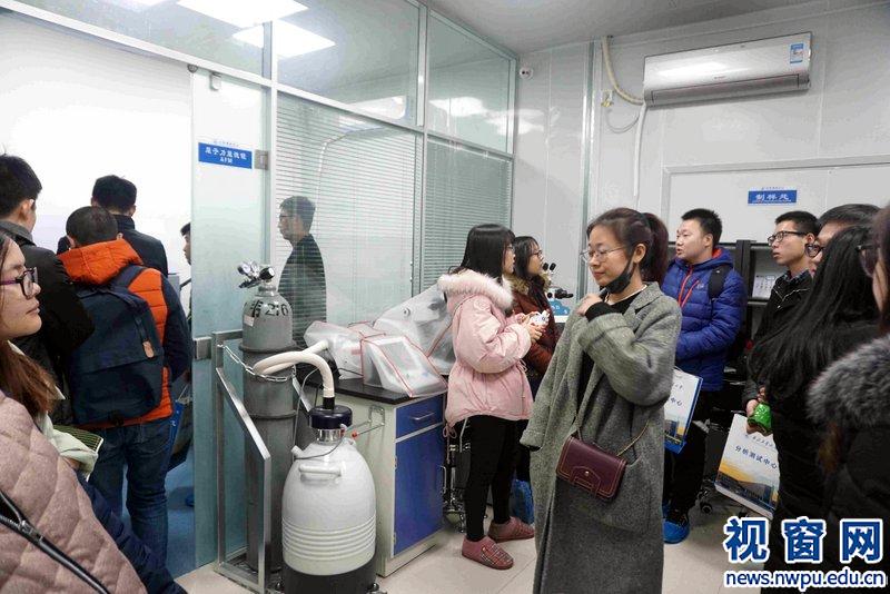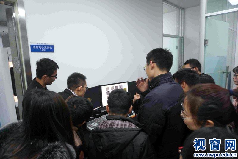 课后中心组织学生实验员参观长安校区TEM、AFM实验室,工程技术人员展示了TEM运行前期典型的分析测试结果,介绍了各种专业制样设备的功能及用途。