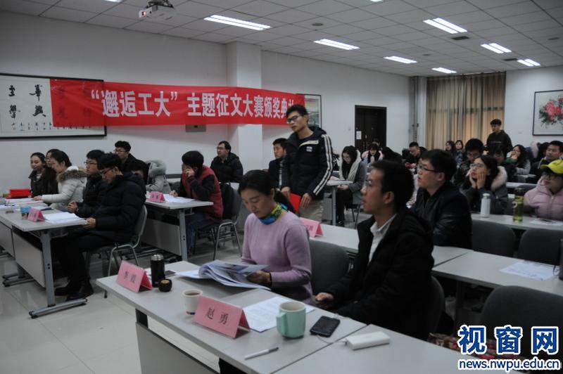 西工大新闻网12月22日电(谷婷婷 肖瑞丰)12月16日上午十点,由党委研究生工作部、西北工业大学研究生会、管理学院研究生会、研究生通讯社主办,力学与土木建筑学院研究生会、人文与经法学院研究生会、理学院研究生会、京东方校园俱乐部承办,梦之翼网络文化工作室协办的第一届“邂逅工大”主题征文大赛在管理学院学术报告厅210举行了颁奖典礼。党委研究生工作部李霞老师、管理学院研究生辅导员赵勇老师出席了此次颁奖典礼,参加典礼的还有京东方校园俱乐部张晗翌、西北工业大学研究生会冯浩阳、西北工业大学研究生通讯社张顺翔、梦之翼网络文化工作室张魁、理学院研究生会肖瑞麟、力学与土木学院研究生会侯勇勇和王钊为、人文与经法学院研究生会赵尉君、管理学院研究生会孙毓俏等。