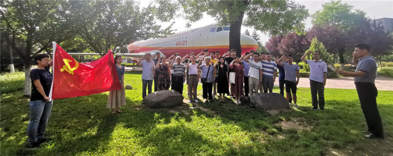 在这个特殊的日子里,安全体验馆活动结束后,学院组织离退休老党员、师生党员代表在长安校区ARJ21大飞机处进行重温入党誓词活动。全体党员在党委书记高大力的带领下,举起右手,紧握拳头,面对鲜红的党旗重温入党誓词:“我志愿加入中国共产党,拥护党的纲领,遵守党的章程……”,铮铮誓言在党旗下、大飞机前响起,表达了全体党员干部为共产主义奋斗终身的决心,更激发了作为一名共产党员的自豪感与责任感。