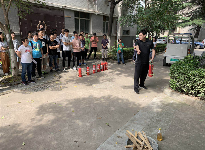 随后,许磊又重点强调了科研实验室在消防方面应该注意的事项。理论课业结束后,保卫处4位老师指导全体参加培训人员进行了疏散演练和便携式灭火器的实际操作训练。