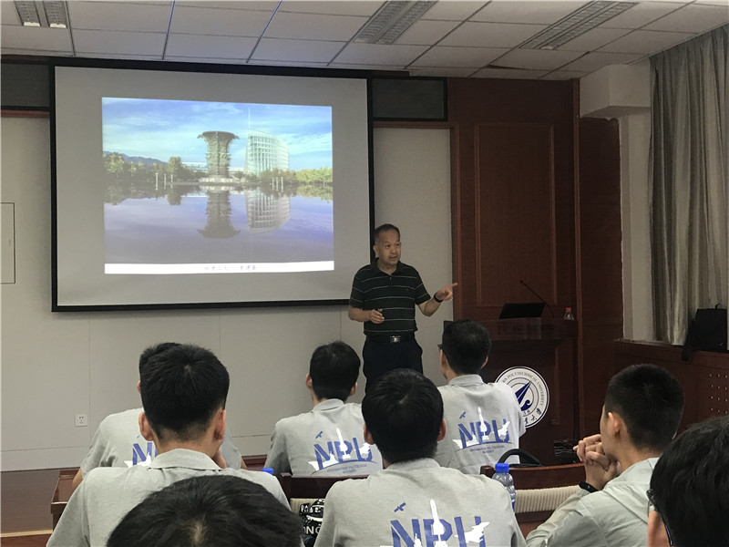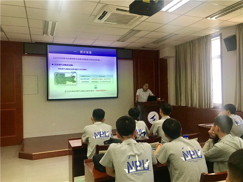 结束了实验室的参观,郑龙席教授和索建秦教授分别为同学们做了“燃烧爆震航空发动机”和“航空发动机燃烧室”的科普讲座报告。