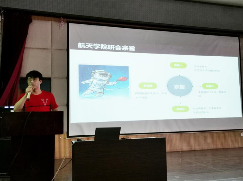 研究生辅导员巴燕为同学们详细介绍了学院办事指南,并分享了研究生生活和注意事项,希望同学们遇到问题及时与学院沟通。研究生辅导员谭明虎以自身为例分享了研究生的学习和生活,鼓励同学们重视专业课程,多看文献多思考,认真做好科学研究,同时利用好学院提供的各种平台,多参与学术交流和课外活动。研究生会主席张瑶和前任主席常越为同学们介绍了学院研究生会的基本情况以及组织的各项学生活动,展示了航天学子们积极向上的精神风貌与丰富多彩的课余生活,鼓励同学们在努力学习、认真科研的同时,积极加入研究生会,参与研究生会的组织的各项活动,共同构建和谐校园文化环境。