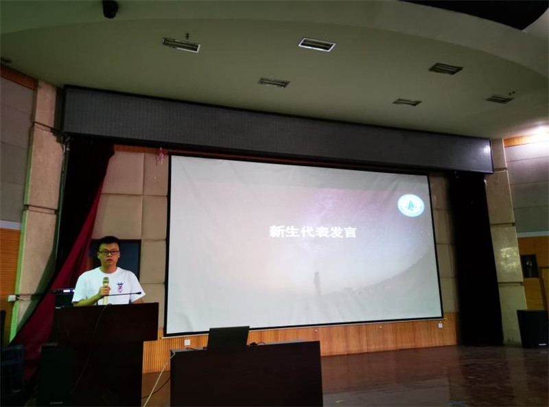 接着,黄鹏飞同学作为新生代表发言,他呼吁同学们牢记“公诚勇毅”校训,践行“三实一新”校风,做好角色转换,尽快适应研究生的学习生活,多与导师、同学交流,用汗水和努力来记录自己的成长轨迹,续写西工大航天学院的华美乐章。