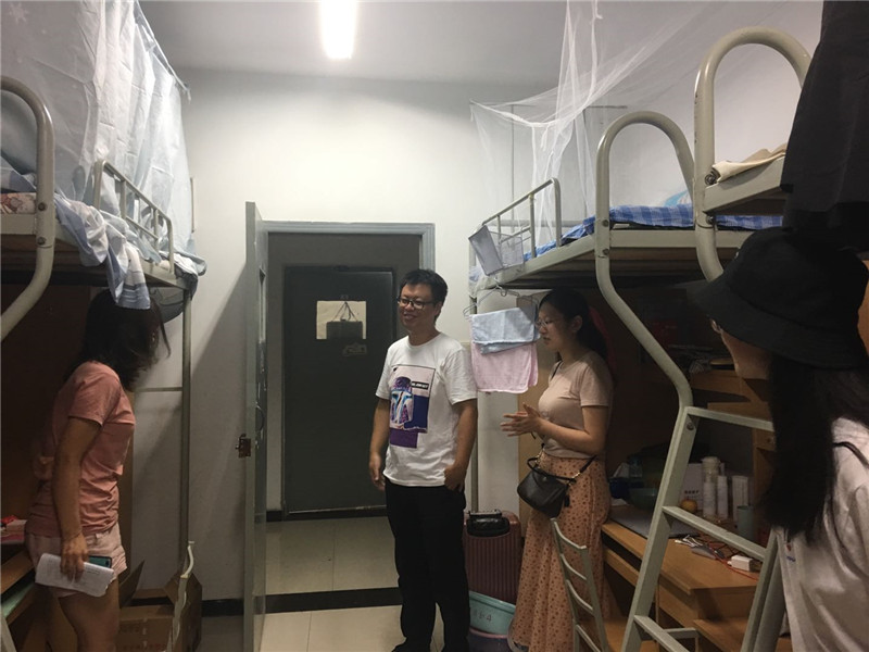 慰问小组一行人走访了新生入住的1号楼B座女生宿舍。每到一个宿舍,两位老师都和大家亲切交谈,鼓励大家多和同学们沟通交流,尽快适应新环境,如果遇到什么问题及时向老师们求助。同学们也纷纷表示会尽快适应新环境,同时感谢学院老师的关怀。